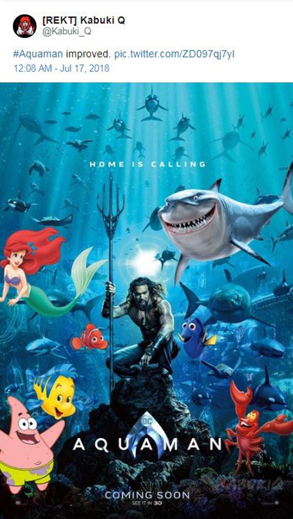 ค่ายดีซีเพิ่งเปิดตัว Aquaman ฮีโร่คนใหม่ไปได้ไม่นาน ก็ถูกแฟนๆ เอาไปทำภาพล้อเลียนซะแล้ว มีทั้งการแชร์ไอเดียเอาไปคลอสโอเวอร์กับหนังเรื่องอื่นกันแบบขำๆ บางคนก็รณรงค์เรื่องการอนุรักษ์ท้องทะเลไปด้วยซะเลย จะฮาแค่ไหนมาตามไปดูกัน