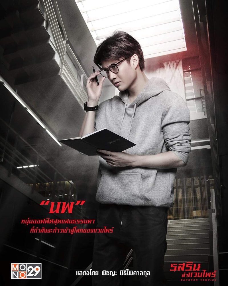 กอล์ฟ - พิชญะ นิธิไพศาลกุล หนุ่มหล่อสุดฮอตที่สาวๆ ชาวไทยกรี๊ดกร๊าด เจ้าของซิงเกิ้ลฮิตอย่าง Fight For You, ที่ปรึกษา, คนๆ เดียวกัน ฯ มารับบทเป็น นพ หนุ่มเนิร์ดธรรมดาๆ ที่บังเอิญได้รู้ความลับว่ารสริน พนักงานสาวสวยมาดขรึมที่ทำงานออฟฟิศเดียวกับเขานั้นเป็นแวมไพร์นักล่า เขาจึงกลายเป็นผู้ช่วยเธอสืบหาความจริงเบื้องหลังคดีลึกลับนี้