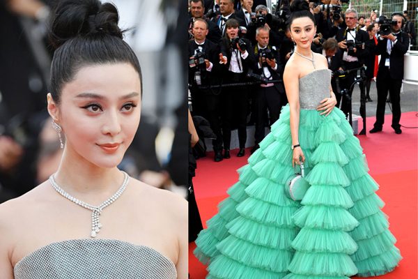ฟ่านปิงปิงดาราสาวซุปตาร์ชาวจีน ที่สร้างสีสันและเป็นที่จับตามองทุกครั้งบนพรมแดง ปีนี้เธอจัดเต็มด้วยชุดสุดฟูฟ่องสีเขียวพาสเทลจาก Ali Karoui