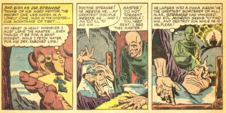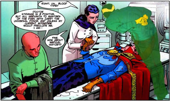 ซึ่งเมื่อนำมารวมกันแล้วจะสามารถเรียงไทม์ไลน์ได้ ดังนี้ ดร. สเตรนจ์เกิดอุบัติเหตุ (Iron Man 2) -> หาวิธีการรักษาด้านการแพทย์นานหลายปีจนหมดเงินหมดทอง (Avengers) -> ใช้เงินก้อนสุดท้ายไปคามาทาจ และปกป้องโลกจากดอร์มามมู (ประมาณช่วง Age of Ultron)