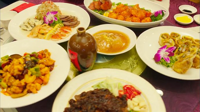 อาหารที่ประกอบขึ้นตามวัฒนธรรมของชาวจีน ซึ่งรวมทั้งจีนแผ่นดินใหญ่ ไต้หวันและ ฮ่องกง มีหลากหลายชนิดตามแต่ละท้องถิ่น เป็นที่นิยมไปทั่วโลก โดยเฉพาะในเกาหลีที่ถึงกับมีความเชื่อว่าวันย้ายเข้าบ้านใหม่ควรทานอาหารจีน ของกินที่เป็นเมนูขึ้นชื่อก็มีมากมาย อย่าง ล็อบสเตอร์, พระกระโดดกำแพง, หมูดงพา, ปอเปี๊ยะกรอบ, หมูอบเครื่องเทศ, ราโจกี, ผัดวุ้นเส้น, ซุปข้าวตัง, ไก่เปรี้ยวหวาน, หูฉลาม, หมูผัดเปรี้ยวหวาน