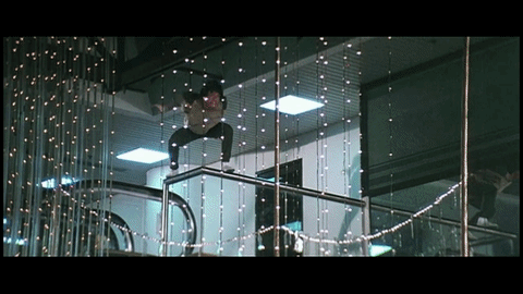 ฉากแรกมากันที่ Police Story หรือ วิ่งสู้ฟัดภาคแรกที่เข้าฉายในปี 1985 ซึ่งในฉากนี้ เฉินหลง ได้ไล่ล่าตัวคนร้ายที่วิ่งลงไปชั้นล่างขณะที่เฉินหลงอยู่ชั้นบน ด้วยความที่คิดว่าจะไม่ทันการ ฉากช็อคโลกนี้จึงเกิดขึ้น เฉินหลงได้กระโดดรูดเสาลงมาตั้งแต่ชั้น 4 ยันชั้น 1 ท่ามกลางหลอดไฟที่แตกอยู่รอบตัว ก่อนจะตกใส่หลังคากระจกข้างล่าง โดยกระจกที่ใช้ในฉากนั้นเป็นกระจกน้ำตาล (Sugar Glass) ที่มีขนาดหนากว่ากระจกที่ใช้ในฉากผาดโผนทั่วไป จึงทำให้เฉินหลงกระดูกสันหลังหักและเกือบเป็นอัมพาต