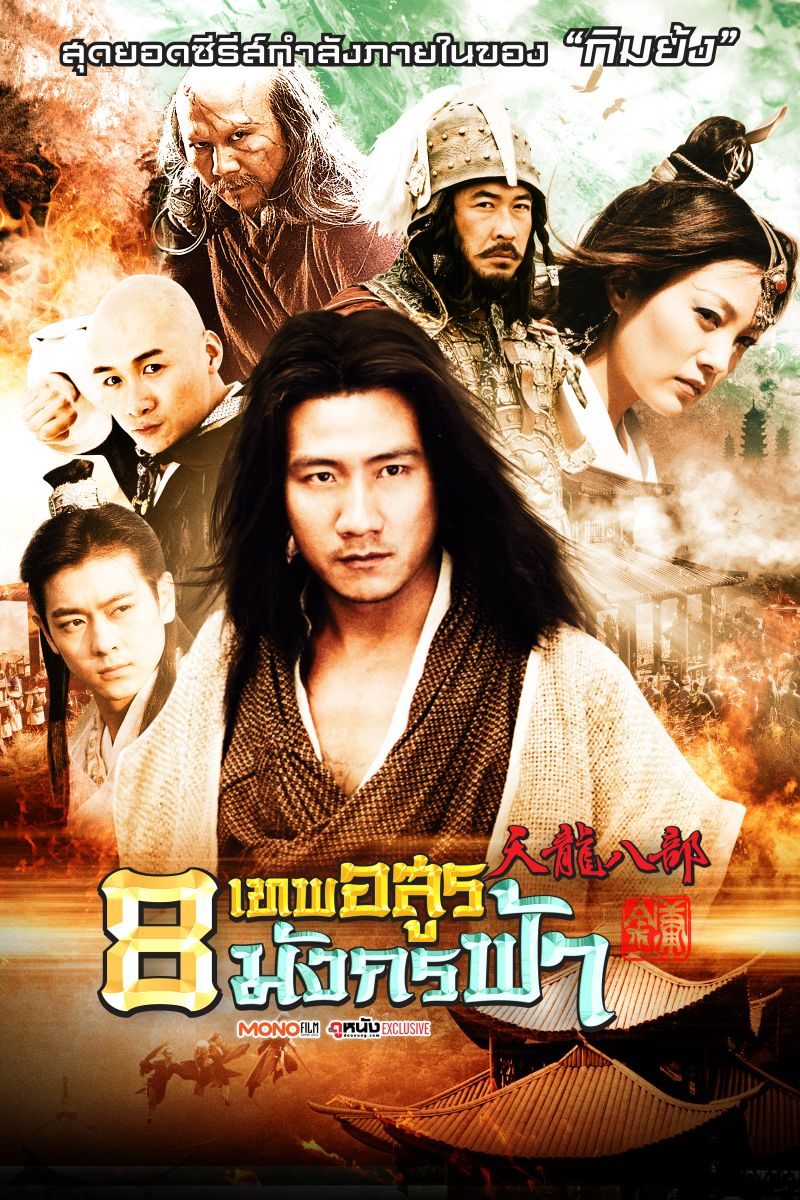 8 เทพอสูรมังกรฟ้า เรื่องราวเหตุการณ์ในยุคราชวงศ์ซ่งที่ทำศึกรบพุ่งกับแคว้นเหลียว เฉียวฟง จอมยุทธ์หนุ่มผู้เปี่ยมด้วยคุณธรรม ถูกเหล่าคนถ่อยใส่ความว่าเป็น ฆาตกรสังหารรองประมุขพรรคกระยาจกและขุดคุ้ยนำเรื่องชาติกำเนิดมาเปิดโปง จนทำให้เหล่าชาวยุทธ์บางส่วนหลงเชื่อจึงพยายามกดดันให้เฉียวฟงสละตำแหน่งประมุขพรรคกระยาจก เฉียวฟงต้องการล้างมลทินจึงออกเดินทางพยายามสืบหาประวัติเรื่องชาติกำเนิดที่แท้จริงของตนเอง