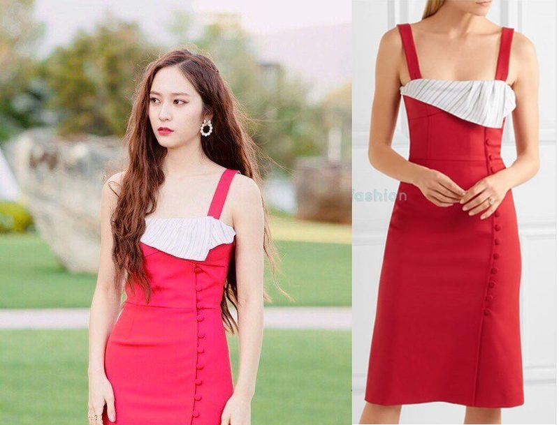 3.สาวคริสตัล ในชุดสีแดงที่ยิ่งส่งให้เธอดูสะดุดสายตาสุดๆ ในเดรสสายเดี่ยวจากแบรนด์ GABRIELA HEARST : Isobel Striped Silk & Wool Blend Dress ราคาประมาณ 1,595 เหรียญ