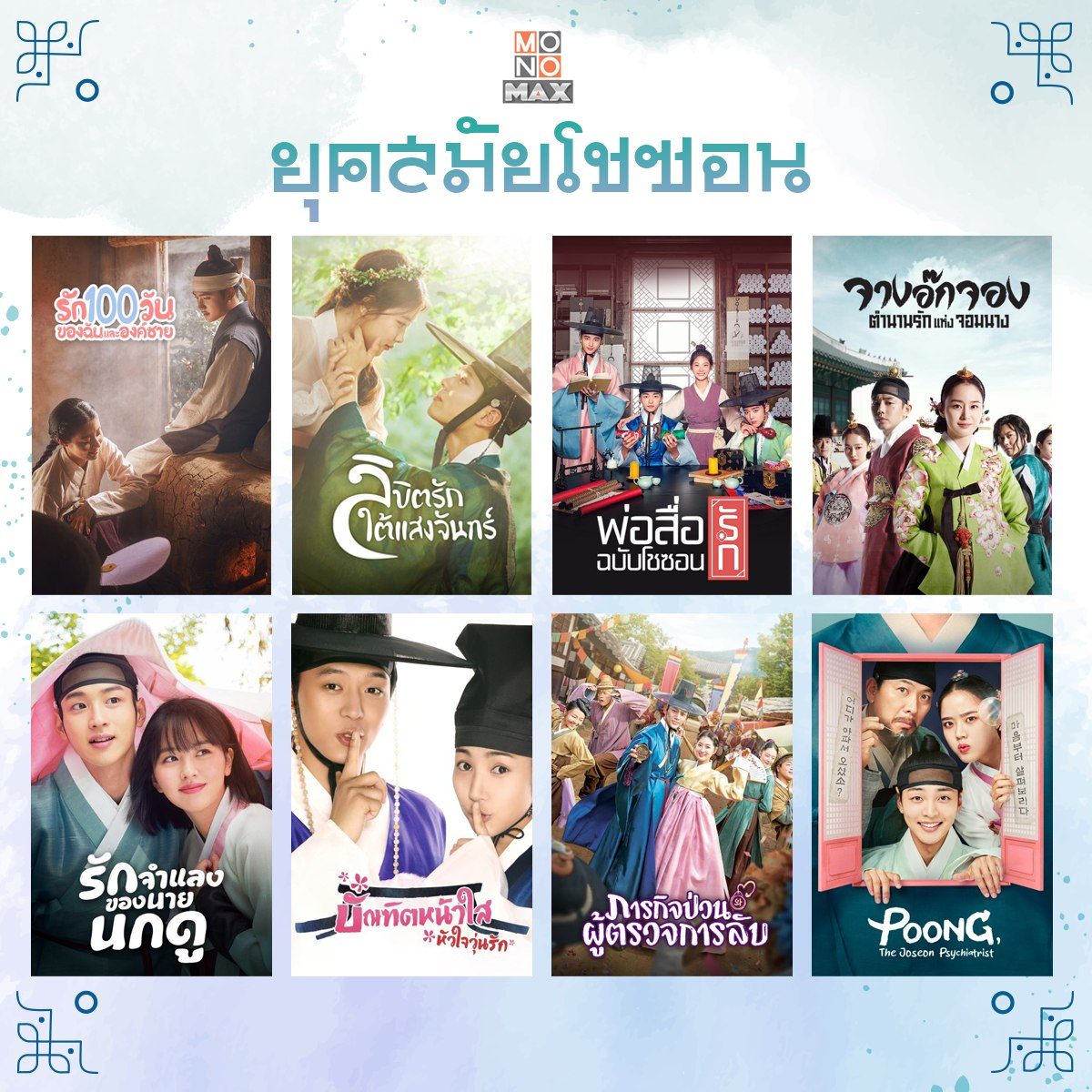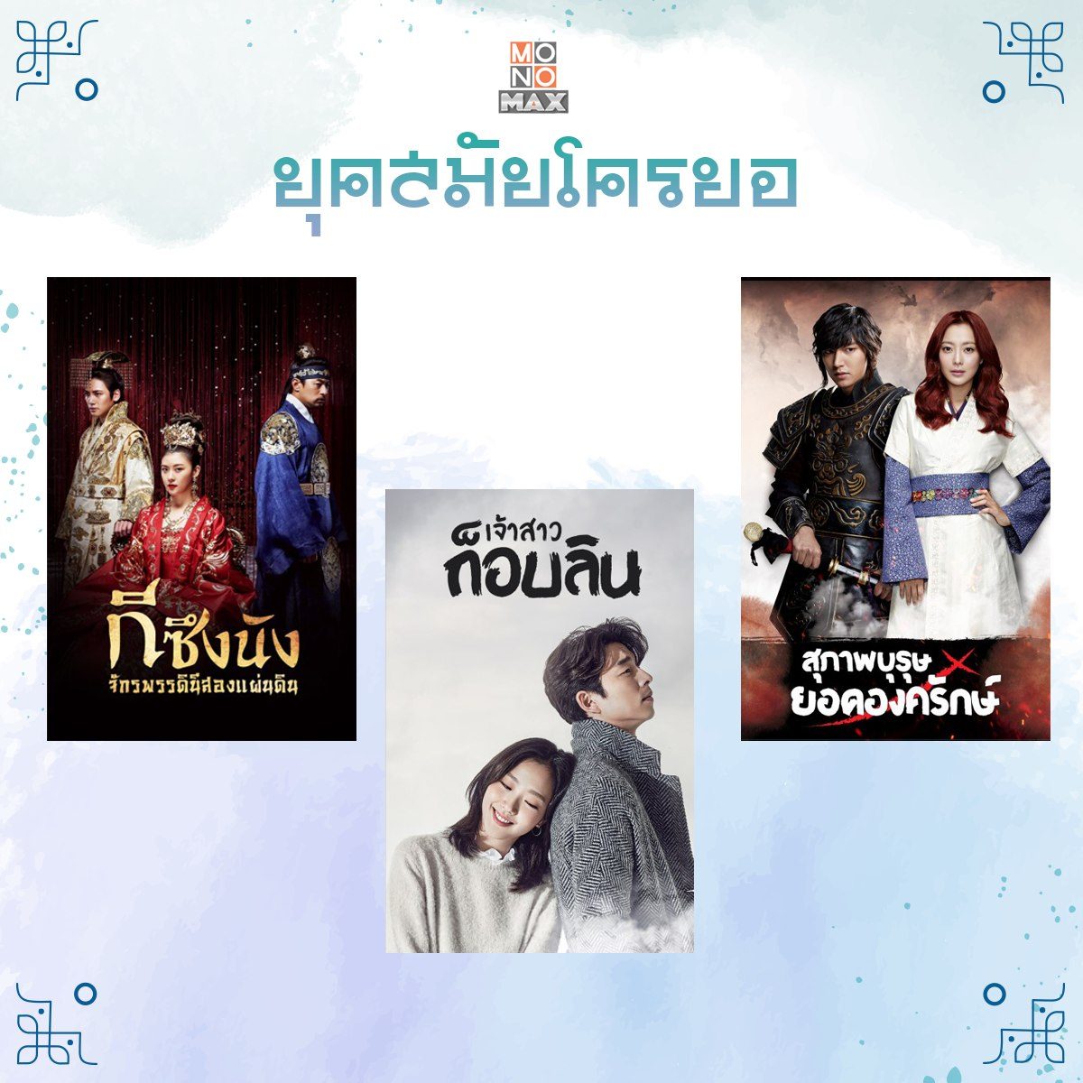 'ซีรีส์ซากึก' หรือซีรีส์เกาหลีแนวย้อนยุค 1 ในแนวที่ได้รับความนิยมตลอดมา แต่เคยสงสัยกันไหมว่าทำไมซีรีส์แนวนี้มักจะเล่าเรื่องผ่านยุคสมัยโครยอและโชซอนเป็นส่วนมาก? วันนี้เราจึงรวบรวมซีรีส์อิงประวัติศาสตร์เกาหลีที่เกิดในสองยุคสมัยนี้มาให้ได้รับชมกัน จะมีเรื่องไรน่าสนใจบ้าง? ตามไปรับชมซีรีส์พากย์ไทยได้ทุกเรื่องที่ MONOMAX
