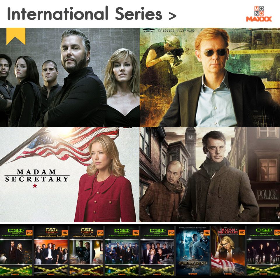 ตามไปดูการสืบเสาะหาหลักฐานคลายปมฆาตกรรมไปกับซีรีส์ CSI ซีรีส์สืบสวนที่มีจำนวนตอนยาวถึง 16 ซีซั่น! เราจะได้เห็นทุกอย่างในที่เกิดเหตุไปพร้อมกับหน่วยพิสูจน์หลักฐาน จากลาสเวกัส และไมอามี่ เมืองที่เต็มไปด้วยคดีลึกลับและน่าสยดสยอง แถมยังมีซีรีส์นักสืบสุดคลาสสิคอย่าง เชอร์ล็อก โฮมส์ Sherlock Holmes เวอร์ชั่นรัสเซีย และซีรีส์การเมืองสุดเข้มข้นอย่าง Madame Secretary ยอดหญิงแกร่ง แห่งทำเนียบขาว