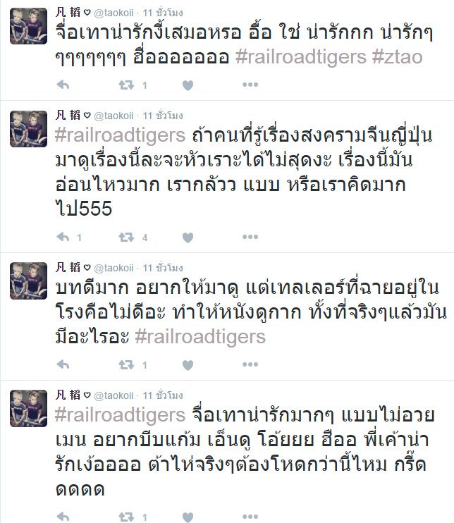 หวงจื่อเทา เป็นอีกหนึ่งสมาชิกวง Exo ที่ออกมาเดินทางการแสดงเต็มตัว และในอาทิตย์นี้ก็มีหนังเขาที่พึ่งเข้าไปกับ Railroad Tigers หรือ ใหญ่ปล้นฟัด ที่หวงจื่อเทาต้องประกบคู่กับ เฉินหลง และนักแสดงคนอื่น ๆ อาทิ หวังต้าลู่, สวี่ฟาน และ อลัน อิง ซึ่งวันนี้ทางเรา MONOMAXXX ก็ได้รวบรวมรีวิวการแสดงของหวงจื่อเทา ในแฮชแท็ก #RailroadTigers ทางทวิตเตอร์ มาให้แฟน ๆ ได้อ่านกัน ก่อนไปชม Railroad Tigers ในโรงภาพยนตร์