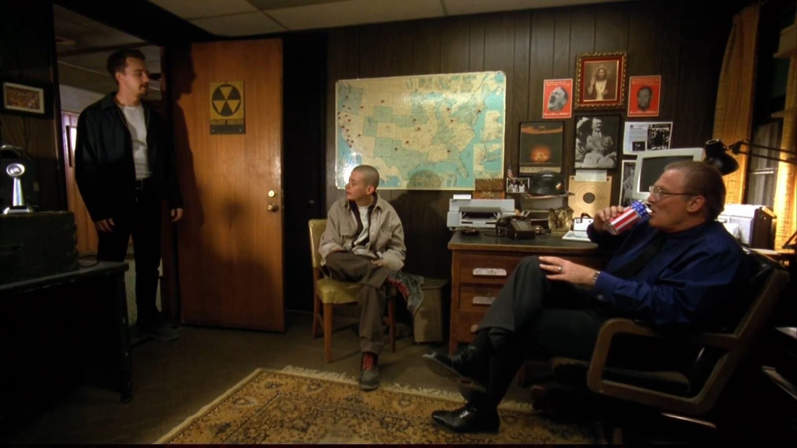 นอกจากเนื้อเรื่องจะหยิบลัทธิ Neo - Nazi ของพวกสกินเฮด สักลายสวัสดิกะที่เทิดทูนเผ่าอารยันเยอรมันและเหยียดชาติอื่น ๆ แบบจมดินมานำเสนอแล้ว ยังสอดแทรกเรื่องราวบ้านเมืองของอเมริกาผ่านบทสนทนาอย่างถึงพริกถึงขิง ทั้งเรื่องงบประมาณผู้อพยพ การจ้างงานพวกโรบินฮูด หรือแม้กระทั่ง คดีรอดนี่ย์ คิง (Rodney King) ที่เป็นคนผิวสีที่เมาแล้วขับรถเร็วซึ่งตำรวจได้ใช้ลูกดอก และตีซ้ำไปที่เขาหลายต่อหลายครั้งระหว่างการจับกุม จนเป็นชนวนนำไปสู่การจลาจลในเมืองลอสแองเจลิส ในปี ค.ศ.1992
