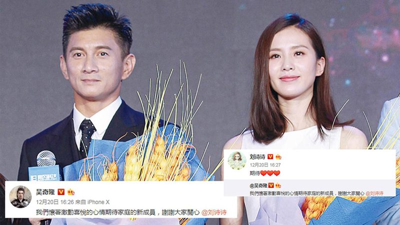 คู่สามีภรรยาจากภาพยนตร์เรื่องไซอิ๋ว 3 ออกมาประกาศข่าวดีอย่างไม่เป็นทางการในโพสเว่ยป๋อ โดยเฟิงเส้าเฟิงออกมาบอกว่า รู้มั้ยว่าครอบครัวเรากำลังจะมีสามคน ส่วนเจ้าลี่อิงก็ตอบว่า รอคอย ต้อนรับปี 2019