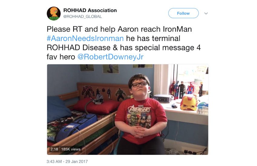 เจ้าของบทบาท ไอรอนแมน ฮีโร่ขวัญใจคนทั่วโลกได้กลายเป็นฮีโร่ตัวจริงขึ้นมาโดยไม่ต้องสวมใส่ชุดเกราะเลย เมื่อเขาได้เดินทางไปหาเด็กชายชาวอังกฤษคนหนึ่งที่ป่วยเป็นโรค Rapid-Onset Obesity with Hypothalamic Dysfunction, Hypoventilation and Autonomic Dysregulation (ROHHAD) ซึ่งเป็นโรคที่ยังไม่มีทางรักษาให้หาย และยังไม่มีการทำวิจัยเกี่ยวกับโรคนี้เพียงพอ แถมนักแสดงคนนี้ยังช่วยทำแคมเปญที่มีชื่อว่า ‘The Muddy Puddle’ เพื่อประชาสัมพันธ์และสนับสนุนทุนให้กับมูลนิธิ BrianOrtegaFoundation และ ROHHAD Association