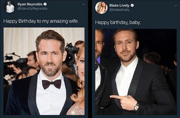 แฟนๆ มักจะได้เห็นการแกล้งกันแบบแสบๆ ฮาๆ ของสองคนนี้ผ่านโซเซียลเสมอๆ อย่างตอนที่หนุ่มไรอัน อวยพรวันเกิดภรรยาด้วยรูปหวานๆ ผ่านอินสตาแกรม แต่ไรอันครอบภาพตัดหน้า เบลค ไลฟ์ลีย์ เหลืออยู่ครึ่งเดียว พร้อมกับเขียนแคปชั่นสุดกวนว่า “Happy Birthday to my amazing wife” ต่อมาเขาเลยโดนภรรยาเอาคืนบ้าง ด้วยการใช้รูปที่สามีถ่ายคู่กับไรอัน กอสลิ่ง แล้วครอปหน้าเรย์โนลด์ออก พร้อมแคปชั่นแสบๆ ว่า "Happy Birthday, baby."