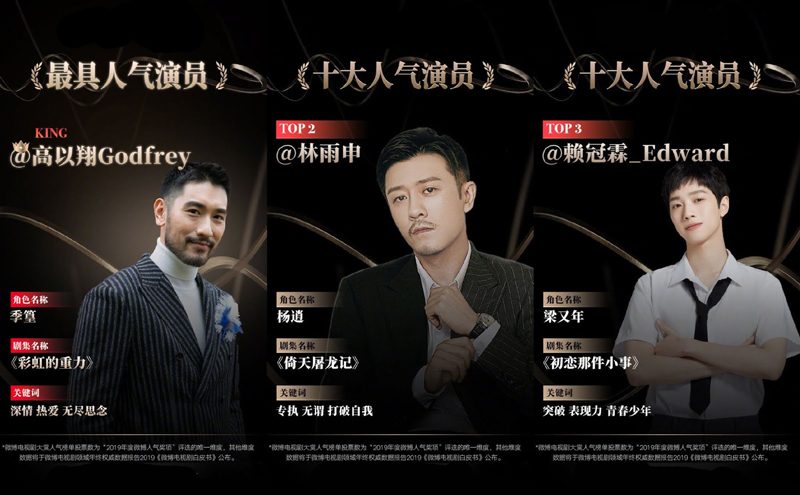 หนึ่งในข่าวเศร้าของปีที่ผ่านมา ก็คือเหตุการณ์การเสียชีวิตของก๊อดฟรีย์ เกา การสูญเสียนายแบบและนักแสดงมากความสามารถคนนี้ไปอย่างกะทันหันสร้างความโศกเศร้าเสียใจให้กับแฟนคลับทั่วโลก แฟนๆ ที่รักเขาต่างร่วมไว้อาลัยให้กับการจากไปของเขา ส่วนอันดับนักแสดงชายยอดนิยมอันดับสองและสาม ก็ตกเป็นของเชน หลิน และ ไลควานหลิน ตามลำดับ
