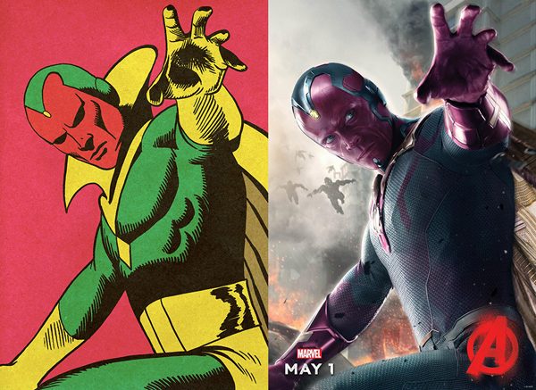 แอนดรอยด์สมาชิกฮีโร่ของทีมอเวนเจอร์ส รับบทโดย พอล เบตตานี ในเวอร์ชั่นภาพยนตร์วิชั่นถูกสร้างมาเหมือนกับต้นแบบทุกอย่าง แต่ใช้สีชุดที่แตกต่างจากเวอร์ชั่นคอมมิค