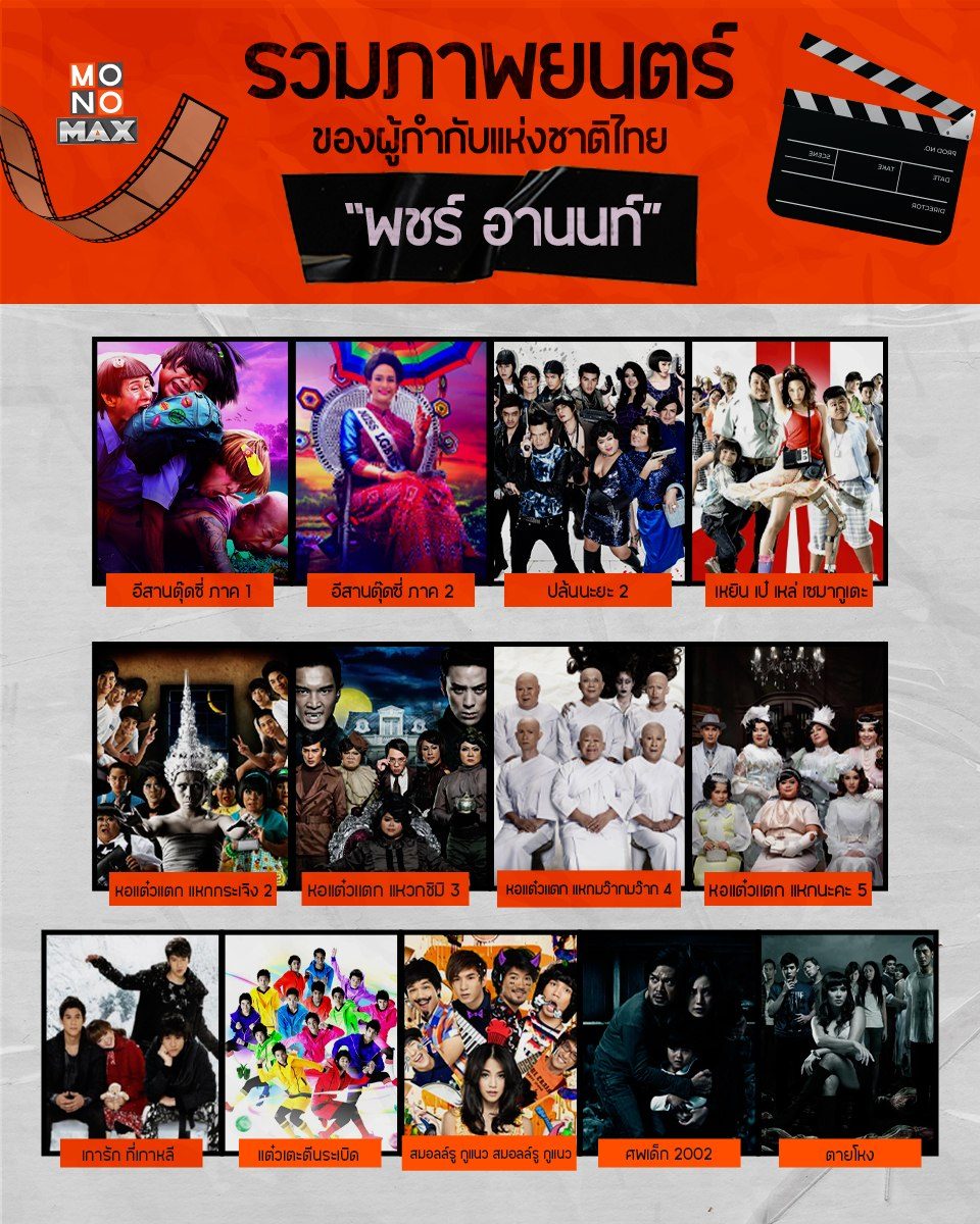 "พชร์-อานนท์" ผู้กำกับมากความสามารถผู้สร้างภาพยนตร์ชื่อดังจนเป็นที่รู้จักกันถ้วนหน้า และในเรื่อง "อีสานตุ๊ดซี่ E-Sarn Tootsie " ก็เป็นอีกหนึ่งผลงานการกำกับล่าสุดบนแอป MONOMAX ที่ได้รับเสียงตอบรับเป็นอย่างดี วันนี้เราจึงถือโอกาสรวบรวมภาพยนตร์ผลงานการกำกับของ "พชร์ อานนท์" มาให้แฟนๆได้เลือกรับชมกันแบบจุใจ แล้วอย่าลืมตามมารับชมหนังและซีรีส์ พากย์ไทย-ซับไทย ที่ MONOMAX